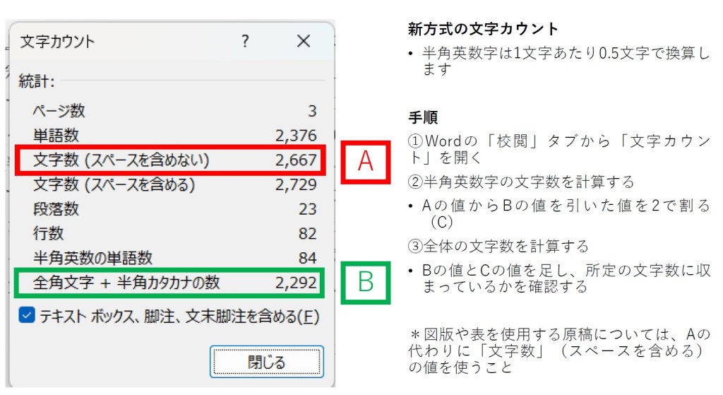 (*図版や表を使用している方は「文字数」(スペースを含める)の値を確認してください)